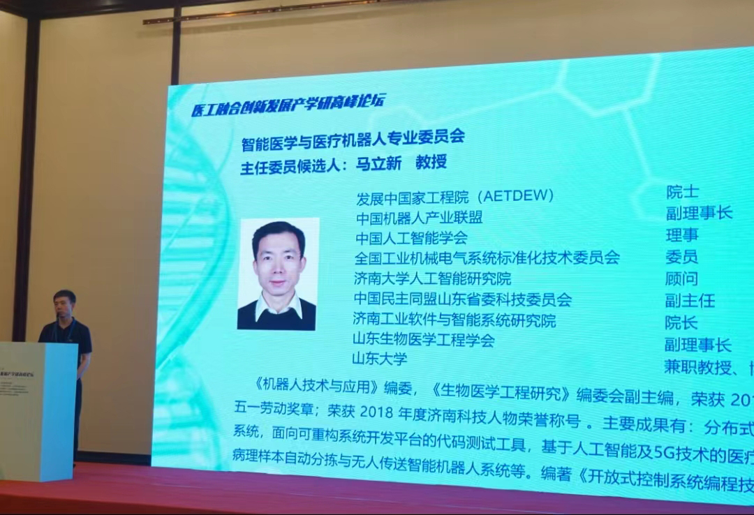 論壇期間,經(jīng)過一百多位委員們的投票選舉產(chǎn)生了以馬立新教授為主任委員、以宋銳教授、田新誠教授、萬熠教授、劉少華教授、蔣紹博主任醫(yī)師、王大川主任醫(yī)師、李琛副主任等為副主任委員的專委會領(lǐng)導(dǎo)班子,伴隨著歡快的樂曲和熱情洋溢的掌聲,山東大學(xué)科學(xué)技術(shù)研究院副院長、山東生物醫(yī)學(xué)工程學(xué)會副理事長張希華教授為馬立新教授頒發(fā)主任委員聘書,并宣布山東生物醫(yī)學(xué)工程學(xué)會“智能醫(yī)學(xué)與醫(yī)療機(jī)器人”專業(yè)委員會正式成立。至此,在盛夏七月的泉城濟(jì)南,論壇為同仁們奉獻(xiàn)了一場由院士、專家和產(chǎn)業(yè)精英們傾力打造的學(xué)術(shù)盛宴。