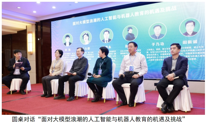 本次論壇上,來自山東大學、北京工商大學、齊魯工業(yè)大學、東北大學、北京工業(yè)大學的宋銳教授、田新誠教授、韓力群教授、曹茂永教授、趙姝穎教授、于乃功教授在主題為“面對大模型浪潮的人工智能與機器人教育之機遇及挑戰(zhàn)”的圓桌對話環(huán)節(jié),圍繞“以大模型為代表的AI工具對基礎教育有何影響?”、“大模型的快速發(fā)展將對人工智能教育的內(nèi)容和方法、手段帶來哪些變革?作為教育工作者我們該如何應對?”、“大模型對機器人技術有何影響?機器人工程、智能制造工程等新工科專業(yè)應該如何應對?”、“大模型對于學生與老師之間的角色定位將產(chǎn)生何種影響? 如何更好地發(fā)揮它的作用?”、“大模型的快速發(fā)展對高校專業(yè)建設與人才培養(yǎng)將產(chǎn)生哪些影響?”等問題展開了深度研討,專家們從各個角度集思廣益、各抒己見,為人工智能助力人才培養(yǎng)及促進教學模式創(chuàng)新發(fā)展獻計獻策。