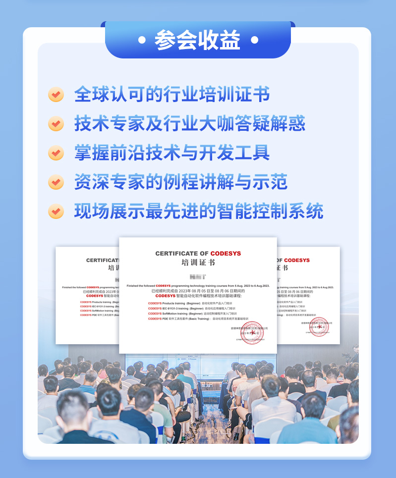 CODESYS 為每一位參會(huì)學(xué)員提供學(xué)習(xí)禮包:《開(kāi)放式控制系統(tǒng)編程技術(shù)——基于IEC 61131-3國(guó)際標(biāo)準(zhǔn)》書(shū)籍1本、參會(huì)期間教案1本。