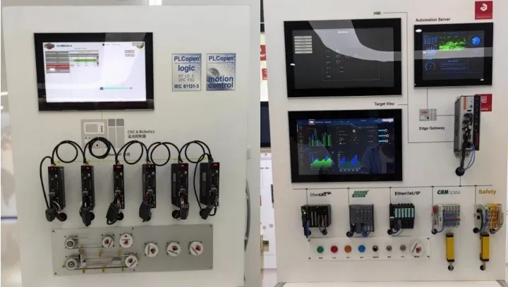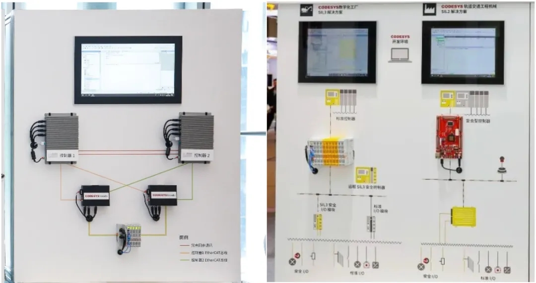 國內(nèi)自主CPU的引領(lǐng)者——龍芯中科展示了在其3A5000 CPU中運(yùn)行CODESYS SoftMotion CNC + Robotics 軟件模塊的 IPC 產(chǎn)品及行業(yè)解決方案,演示了通過在工業(yè)PC中部署運(yùn)行 CODESYS 智能自動(dòng)化編程開發(fā)平臺(tái),實(shí)現(xiàn)了使用一套 CODESYS 軟件工具包套件就可以實(shí)現(xiàn)一個(gè)完整的自動(dòng)化控制解決方案,即基于 CODESYS 軟件平臺(tái)可以實(shí)現(xiàn):邏輯控制 (PLC) 、運(yùn)動(dòng)控制 ( Motion Control )及 CNC 控制、機(jī)器人控制、人機(jī)界面 (HMI) 、基于 Web Service 的網(wǎng)絡(luò)可視化編程和遠(yuǎn)程監(jiān)控、冗余控制 (Redundancy) 和安全控制(Safety)、以及項(xiàng)目開發(fā)與工程協(xié)同管理(SVN)等多個(gè)目標(biāo)和需求。