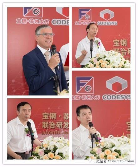 2018年7月19日,在美麗的蘇州,寶鋼工程技術(shù)集團(tuán)與全球領(lǐng)先的工業(yè)信息技術(shù)及數(shù)字化工廠解決方案提供商-德國CODESYS(歐德神思)控股集團(tuán)舉辦了聯(lián)合研發(fā)中心成立慶典活動(dòng)。中國機(jī)械工業(yè)聯(lián)合會(huì)執(zhí)行會(huì)長,中國機(jī)器人產(chǎn)業(yè)聯(lián)盟執(zhí)行理事長宋曉剛先生;聯(lián)合國發(fā)展中國家工程技術(shù)院院士,全國智能機(jī)器人創(chuàng)新聯(lián)盟常務(wù)副理事長,韓力群女士;寶鋼工程技術(shù)集團(tuán)有限公司總經(jīng)理、黨委副書記汪平剛先生;德國CODESYS控股集團(tuán)全球CEO Manfred Werner先生;蘇州大方特種車股份有限公司總經(jīng)理田學(xué)鴻先生;德國CODESYS控股集團(tuán)大中華區(qū)總裁馬立新先生;華中科技大學(xué)制造裝備數(shù)字化國家工程研究中心常務(wù)副主任李斌教授,以及來自匯川技術(shù)、上海新時(shí)達(dá)、上海電氣、重慶川儀、博眾集團(tuán)、新漢、威綸通等等的企業(yè)客戶代表,來自山東大學(xué)、北京科技大學(xué)、哈爾濱工業(yè)大學(xué)(深圳)、上海交通大學(xué)、浙江工業(yè)大學(xué)等已經(jīng)與CODESYS共建實(shí)驗(yàn)室的合作單位代表出席了本次開業(yè)慶典。